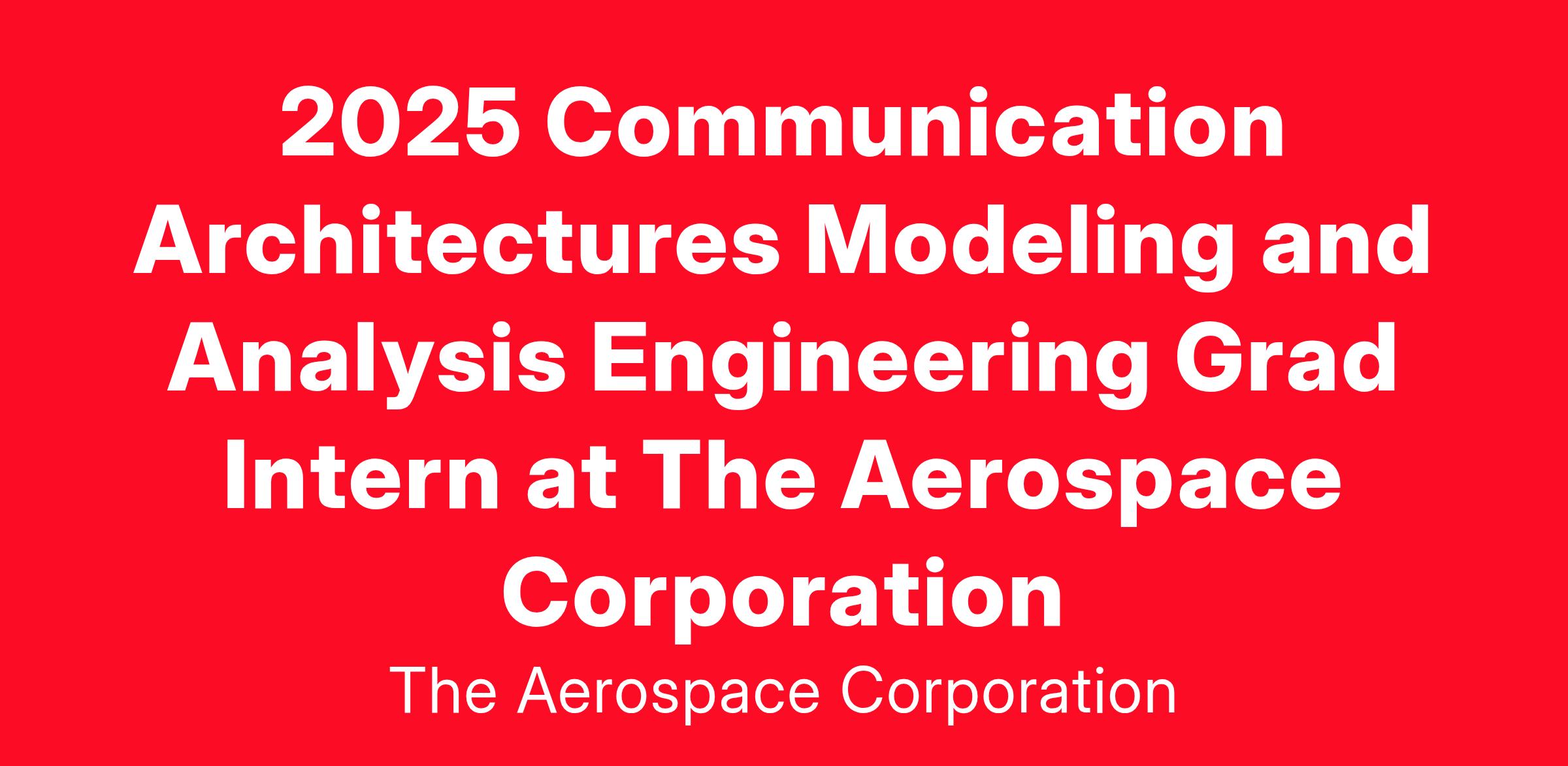 Communication Architectures Modeling and Analysis Engineering Grad Intern for the Communication Architectures Department (CAD) within the Communication Technologies and Engineering Division (CTED). This position will be located in El Segundo, CA.