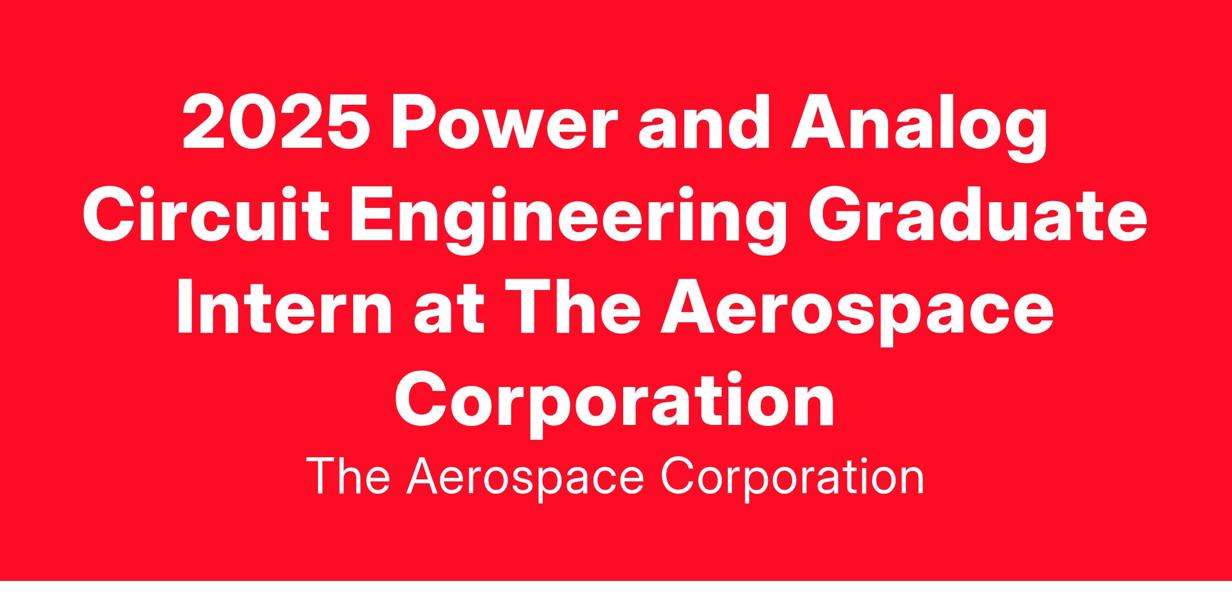 The Aerospace Corporation is hiring a graduate level Power and Analog Circuit Engineering Intern.