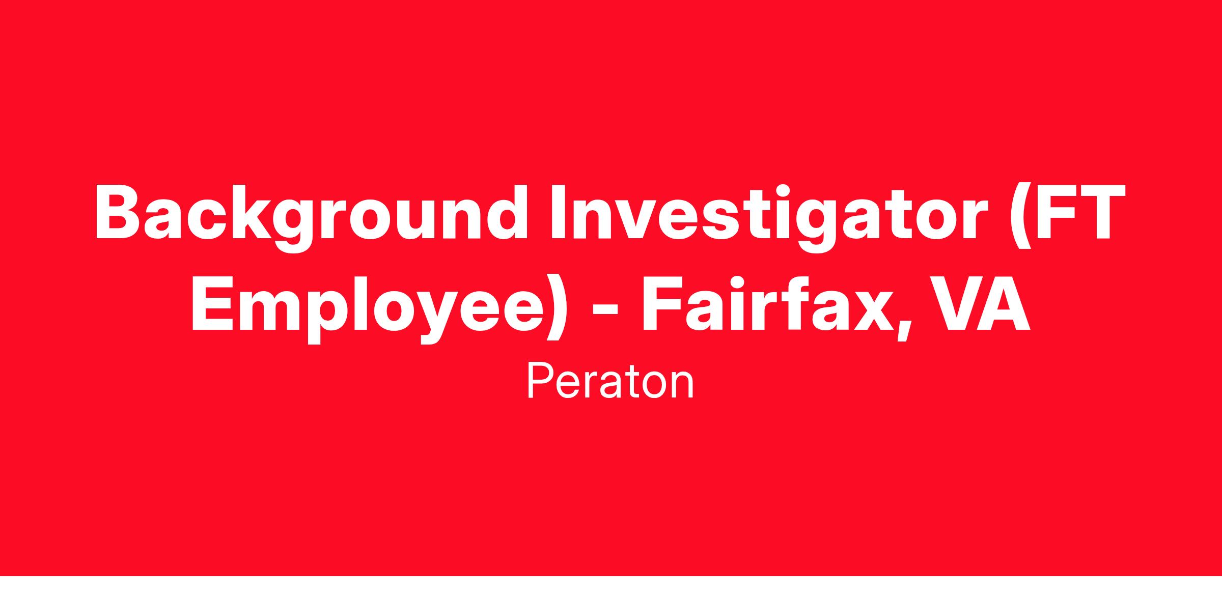 Peraton is seeking to fill a critical role for a full-time background investigator near Fairfax, VA. Applicants must reside within 15 miles of the city center of Fairfax.