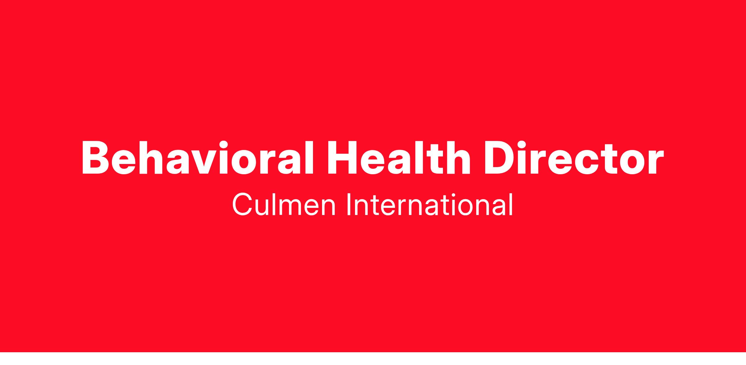 Culmen International is seeking a Behavioral Health Director for an upcoming Health and Human Services opportunity.