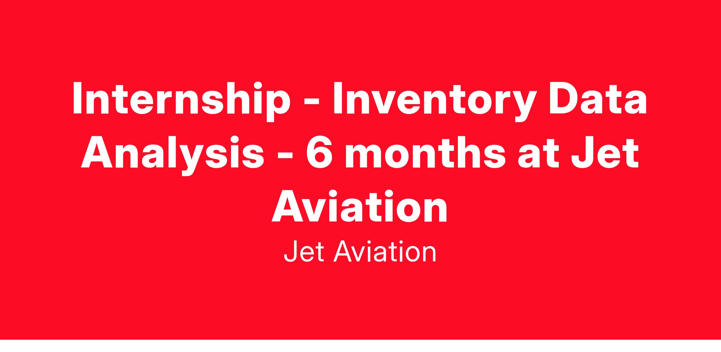 Are you a student in IT/Technology, Computer Science, Engineering, or Data Analytics / Data Visualization or related areas? Do you possess strong analytical and solution-oriented skills with a keen interest in technology and data? If so, Jet Aviation invites you to apply for a 6-month internship as an Intern - Inventory Data Analysis. This role offers a fantastic opportunity to work on a variety of projects within the logistics area, gaining valuable insights and experience.