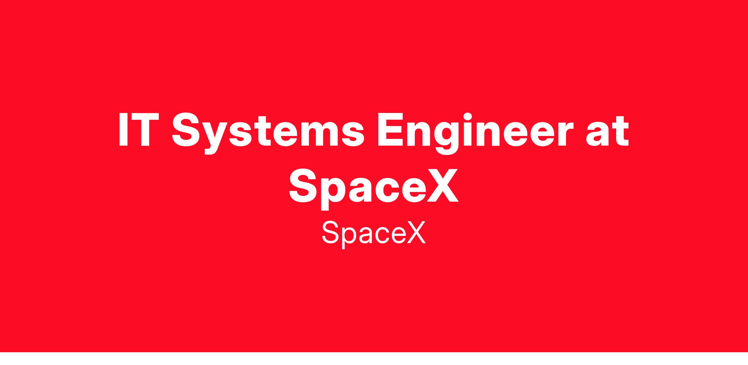 - Work closely with other SpaceX engineers to gather requirements, research, evaluate, design, plan, deploy, and support Microsoft enterprise software platforms and related technologies in a world-class environment that meets the needs of the demanding SpaceX engineering teams