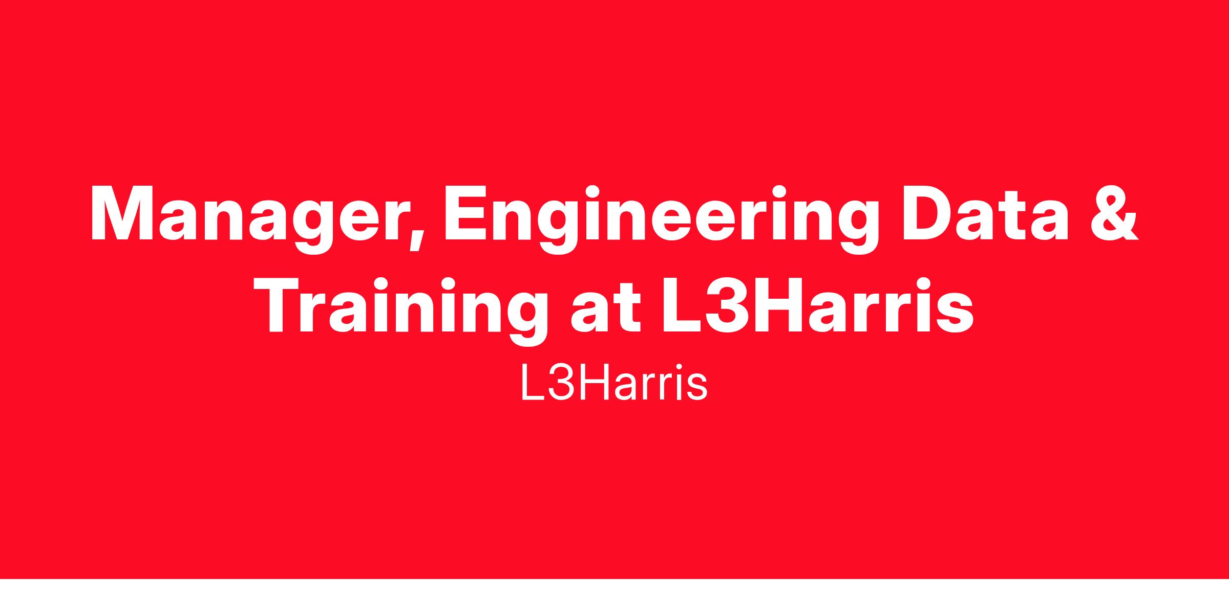 Job Title: Manager, Engineering Data & Training