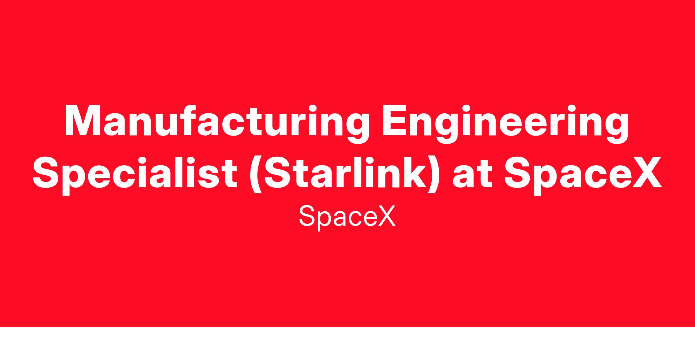 MANUFACTURING ENGINEERING SPECIALIST (STARLINK)