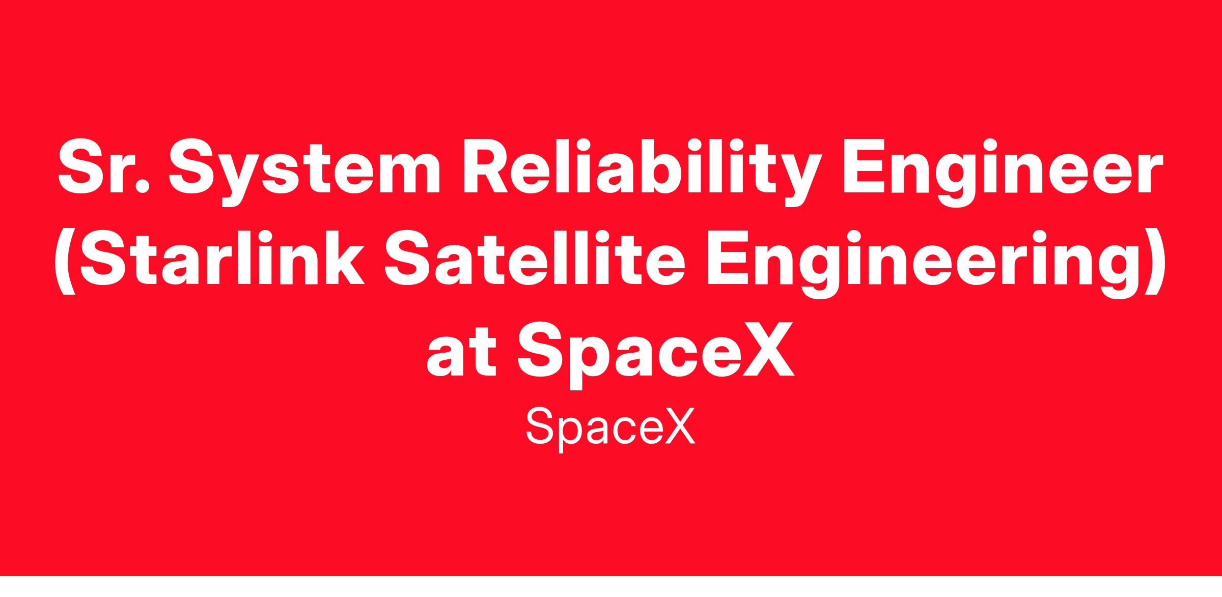 SR. SYSTEM RELIABILITY ENGINEER (STARLINK SATELLITE ENGINEERING)
