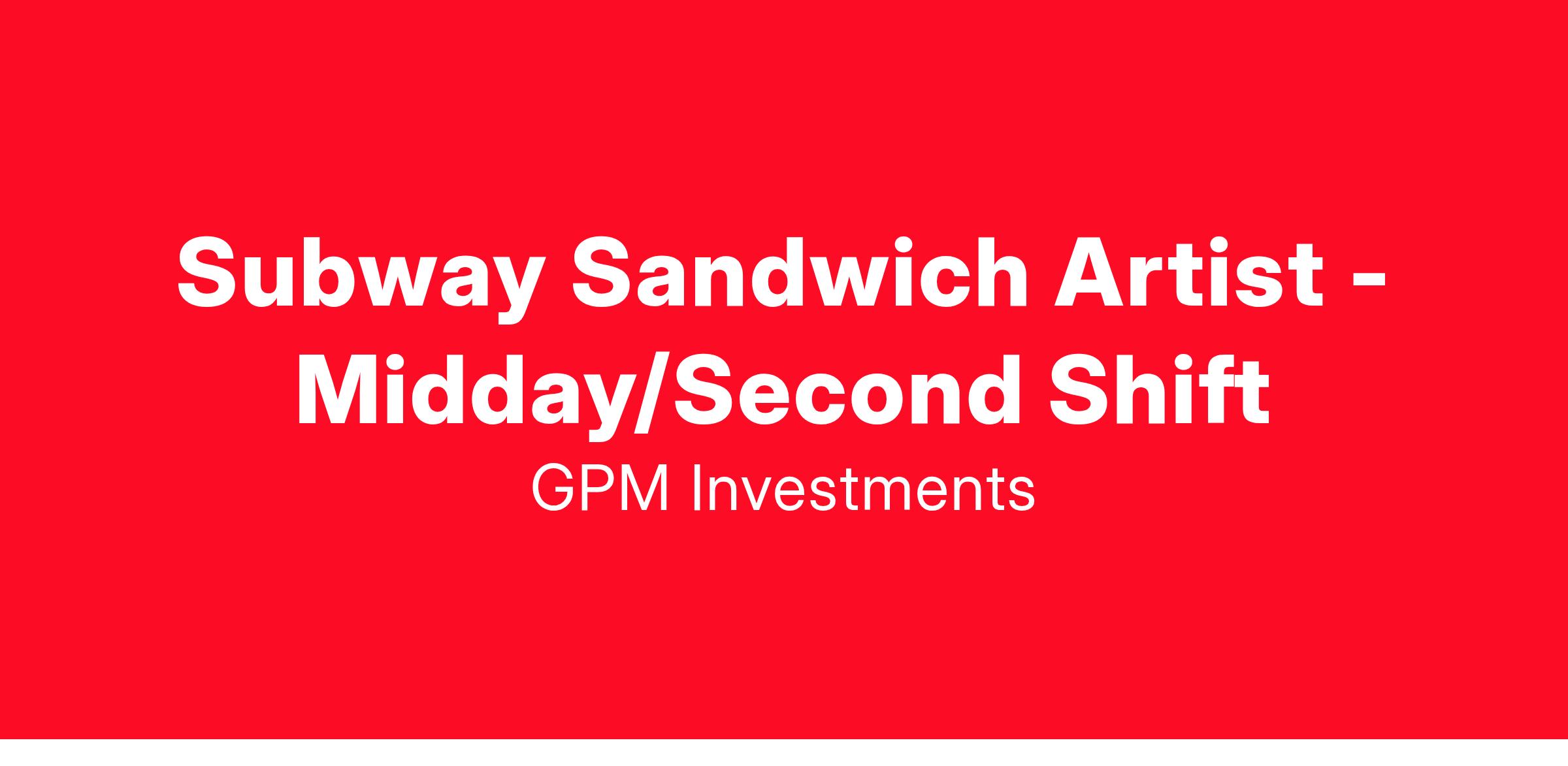 Join us in creating delightful meal experiences for our customers. Apply now to be a part of Subway as a Midday/Second Shift Sandwich Artist/Cashier!